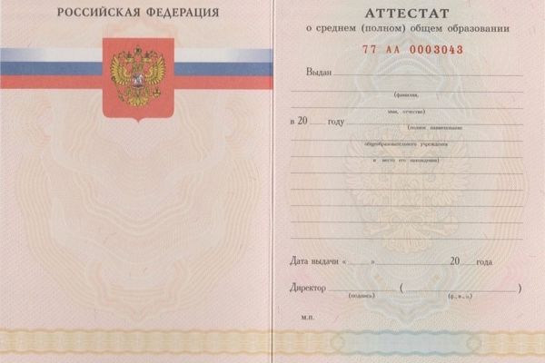 | Аттестат за 11 класс с 2008 по 2009 годы |