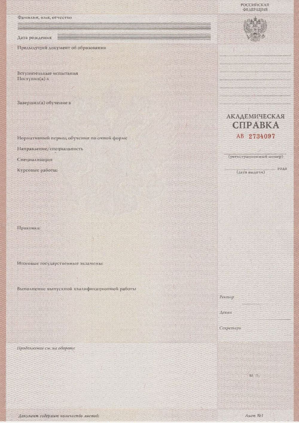 Купить Академическая справка (все года)